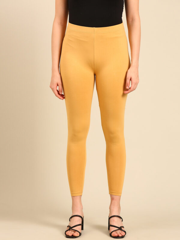 - 55 % Off Select options This product has multiple variants. The options may be chosen on the product page₹999.00Original price was: ₹999.00.₹449.00Current price is: ₹449.00.Add a touch of glamour to your casual wardrobe with these Marcia Gold Solid Cotton Lycra Ankle Length Leggings. Crafted from a soft blend of cotton and Lycra, these leggings offer both comfort and style. The ankle-length design provides a modern and flattering look, while the shimmering gold hue adds a touch of luxury.