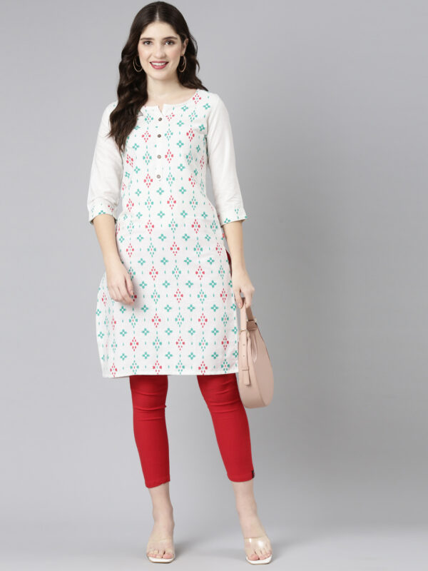 Stay cool and stylish with the Marcia White Printed Rayon Long Kurta. Crafted from lightweight, breathable rayon, this kurta offers unparalleled comfort for all-day wear. The delicate print adds a touch of subtle elegance to the classic white base, making it incredibly versatile. Pair it with your favorite leggings, palazzos, or even jeans for a chic, effortless look. Perfect for casual outings, work, or relaxed gatherings.