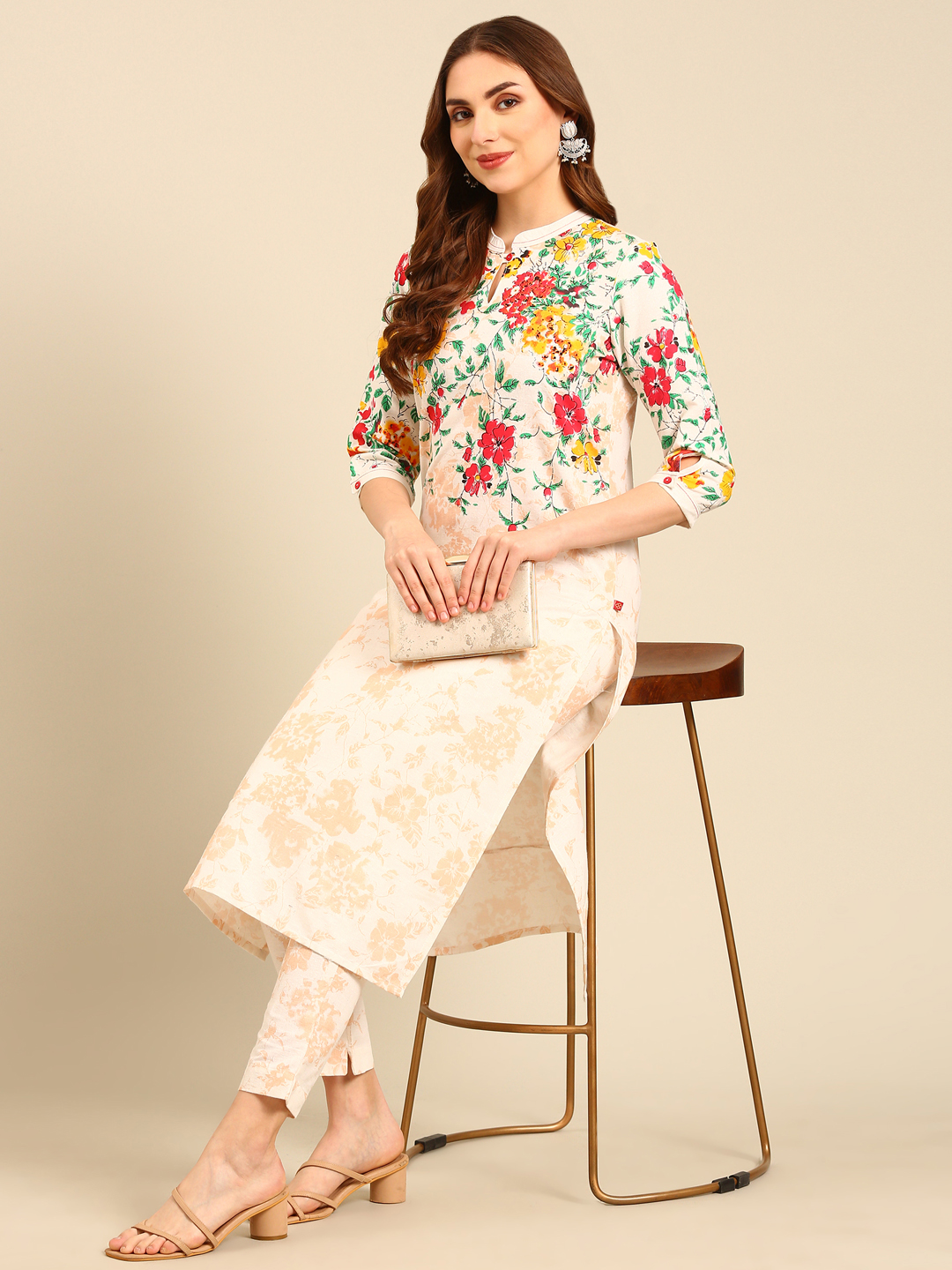 Experience the perfect blend of understated elegance and all-day comfort with the Marcia Beige Printed Cotton Straight Kurta Set. This classic ensemble features a serene beige hue with a subtle print, crafted from breathable cotton for a light and airy feel.