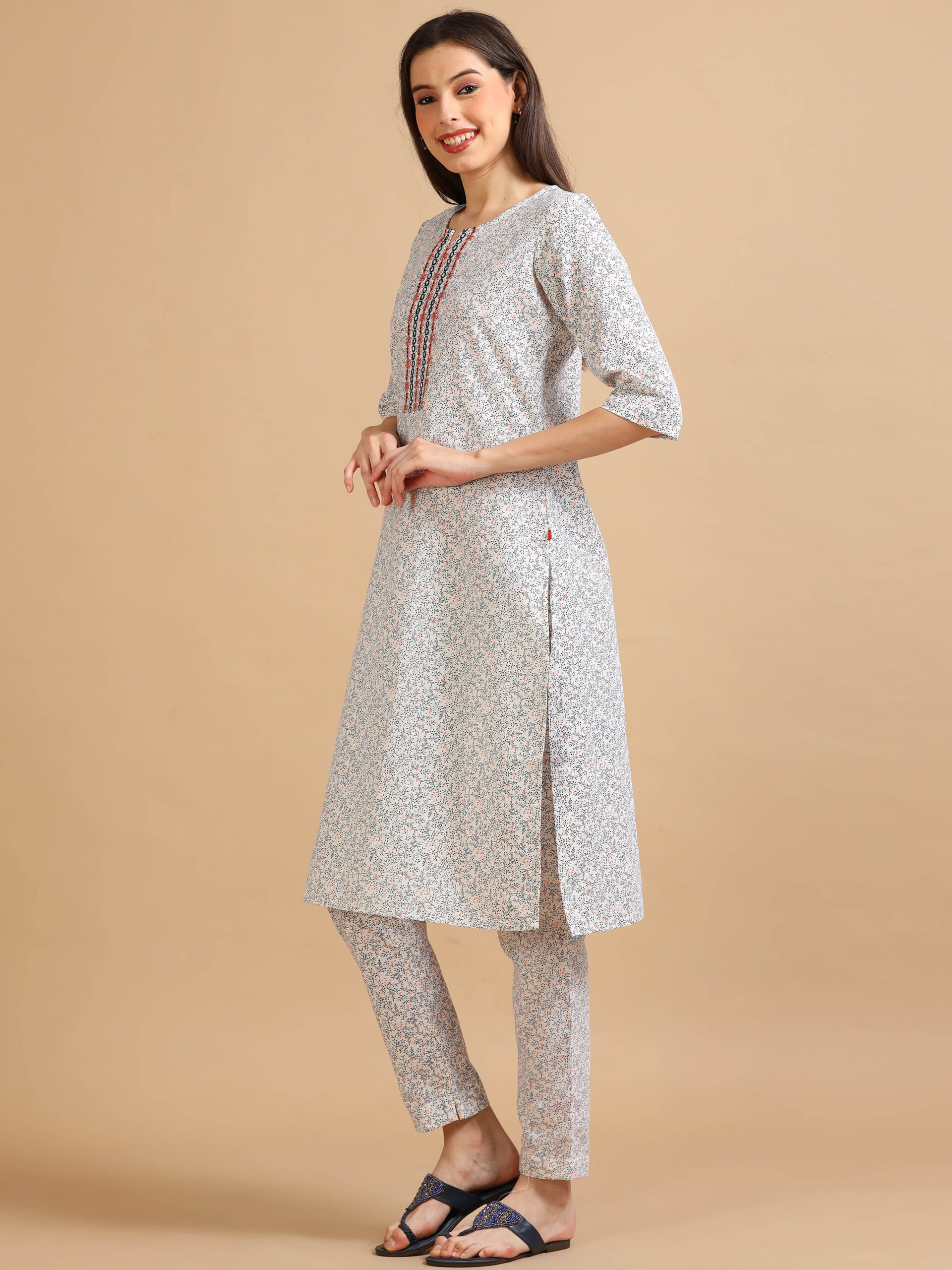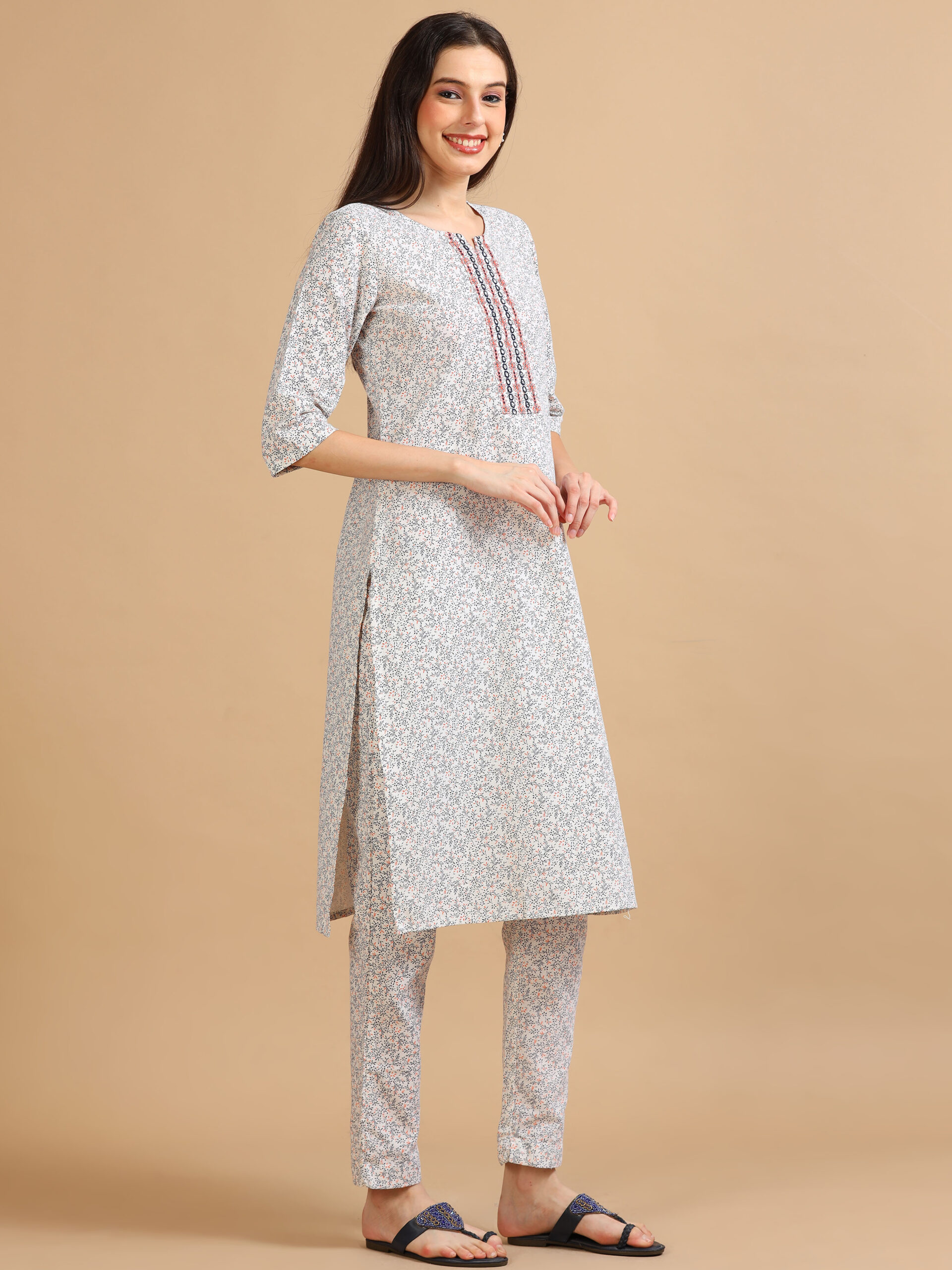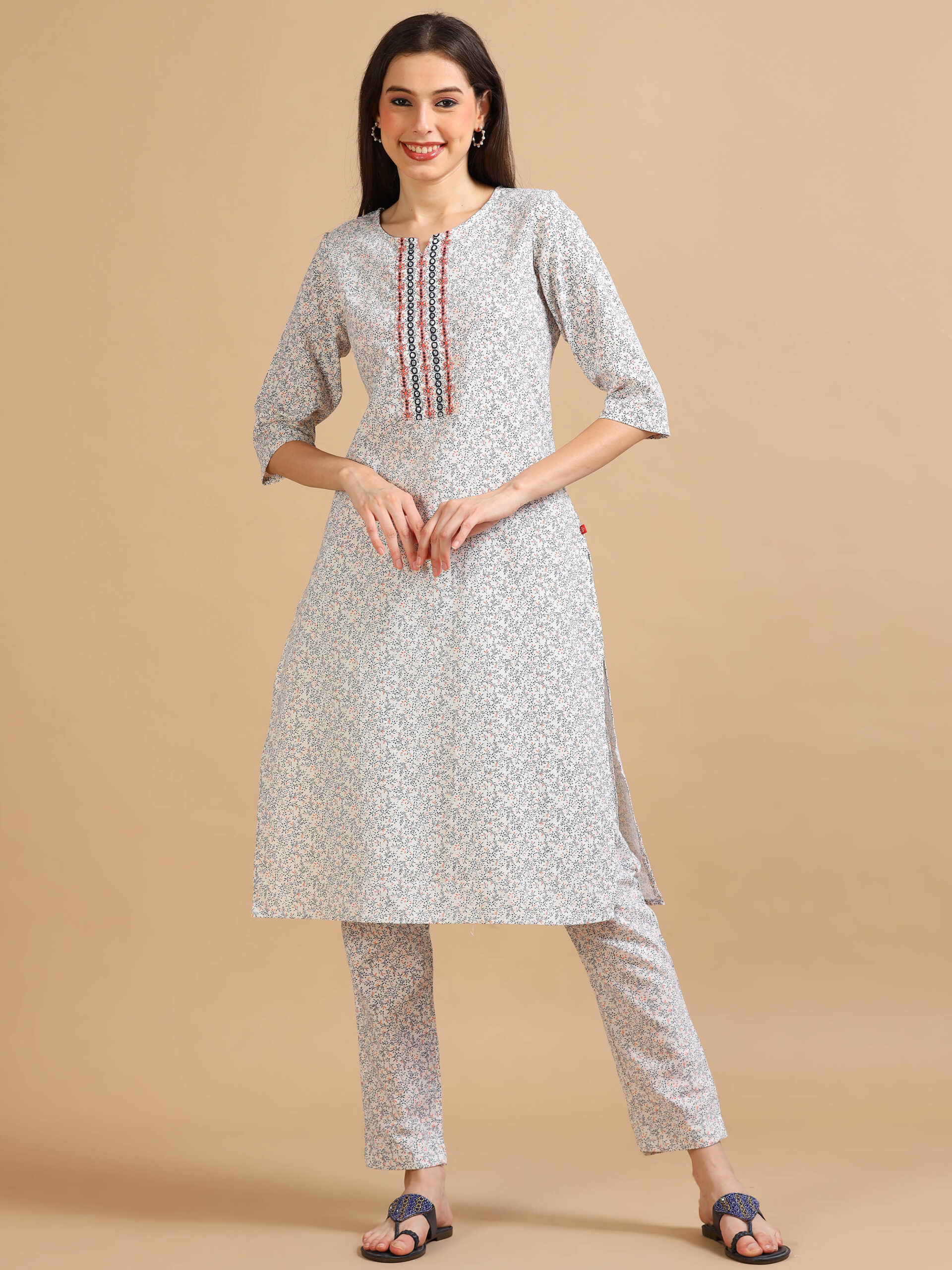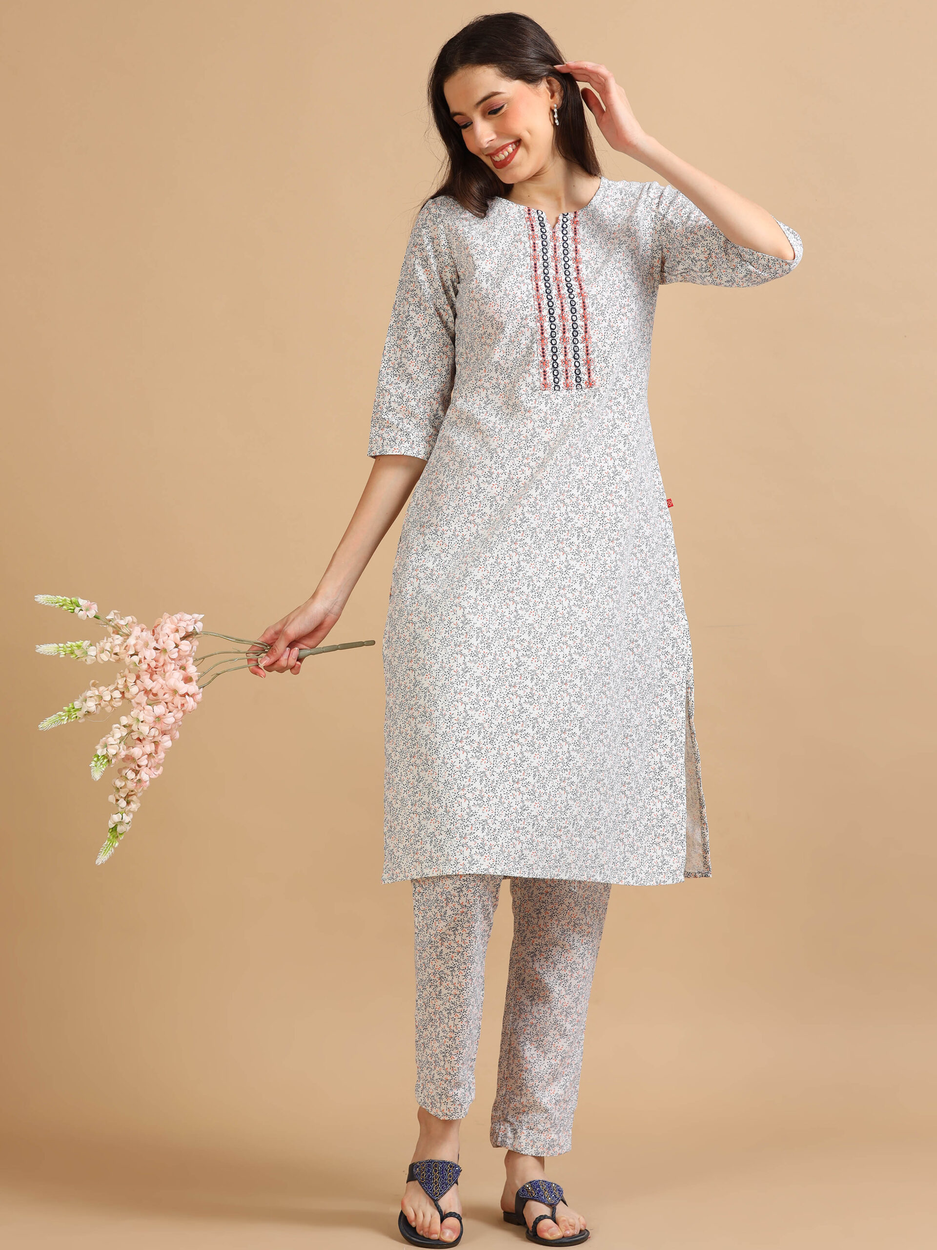 Add a splash of vibrant color to your wardrobe with the Marcia Multi Printed Cotton Kurta Set. This set is perfect for those who love a playful and stylish look.