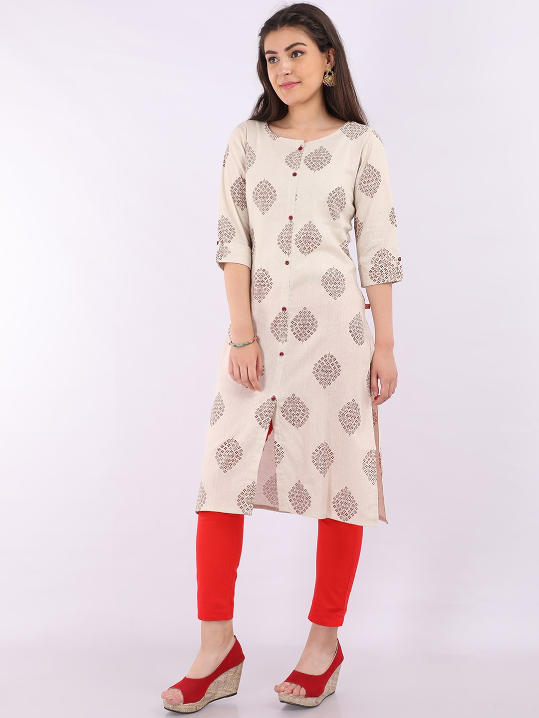 Experience the perfect blend of understated elegance and everyday comfort with the Marcia Off-White Printed Cotton Long Kurta. This piece features a soft off-white base adorned with a delicate print, crafted from breathable cotton for a light and airy feel.
