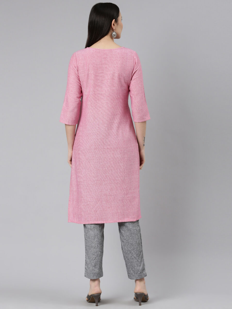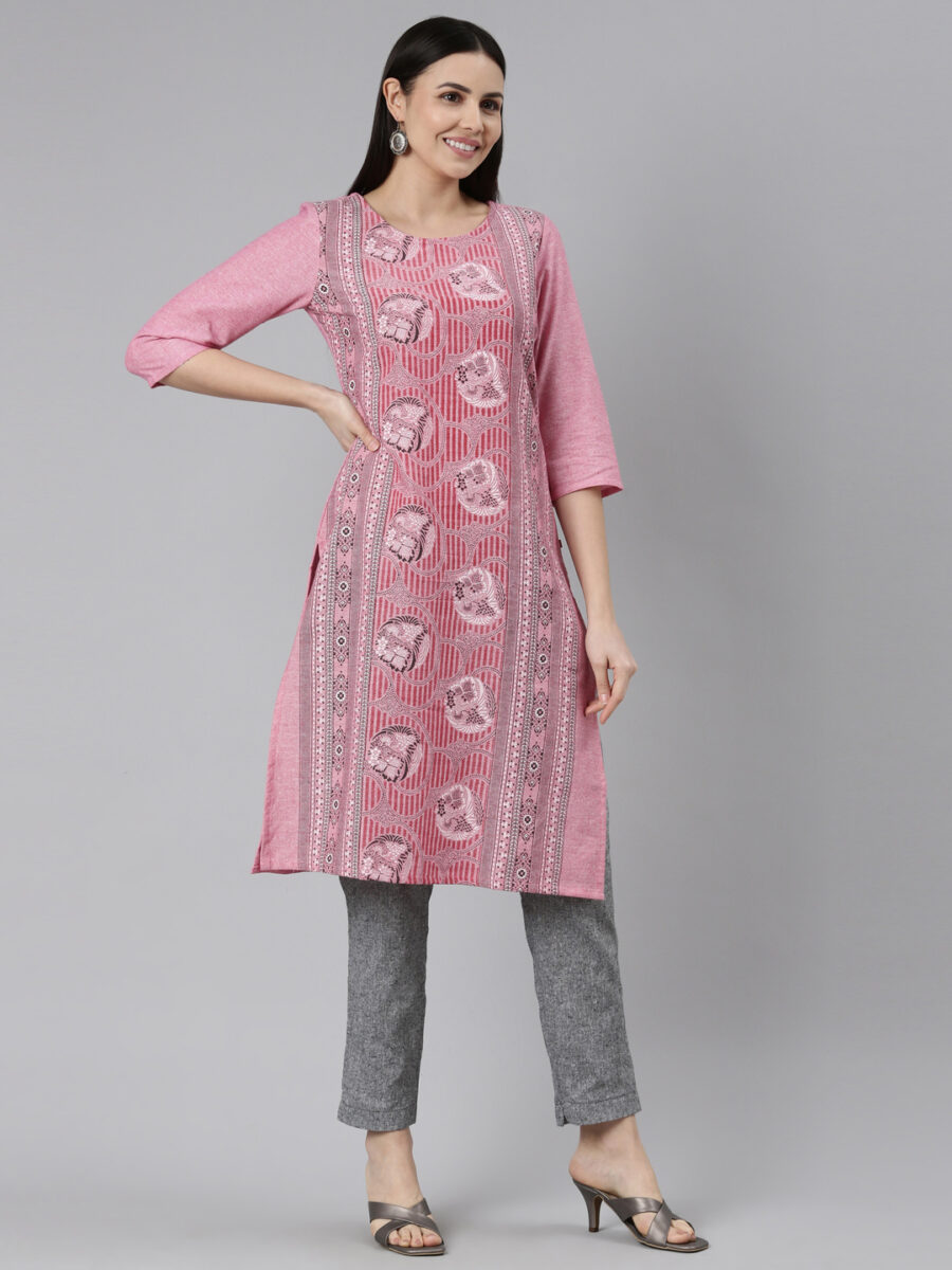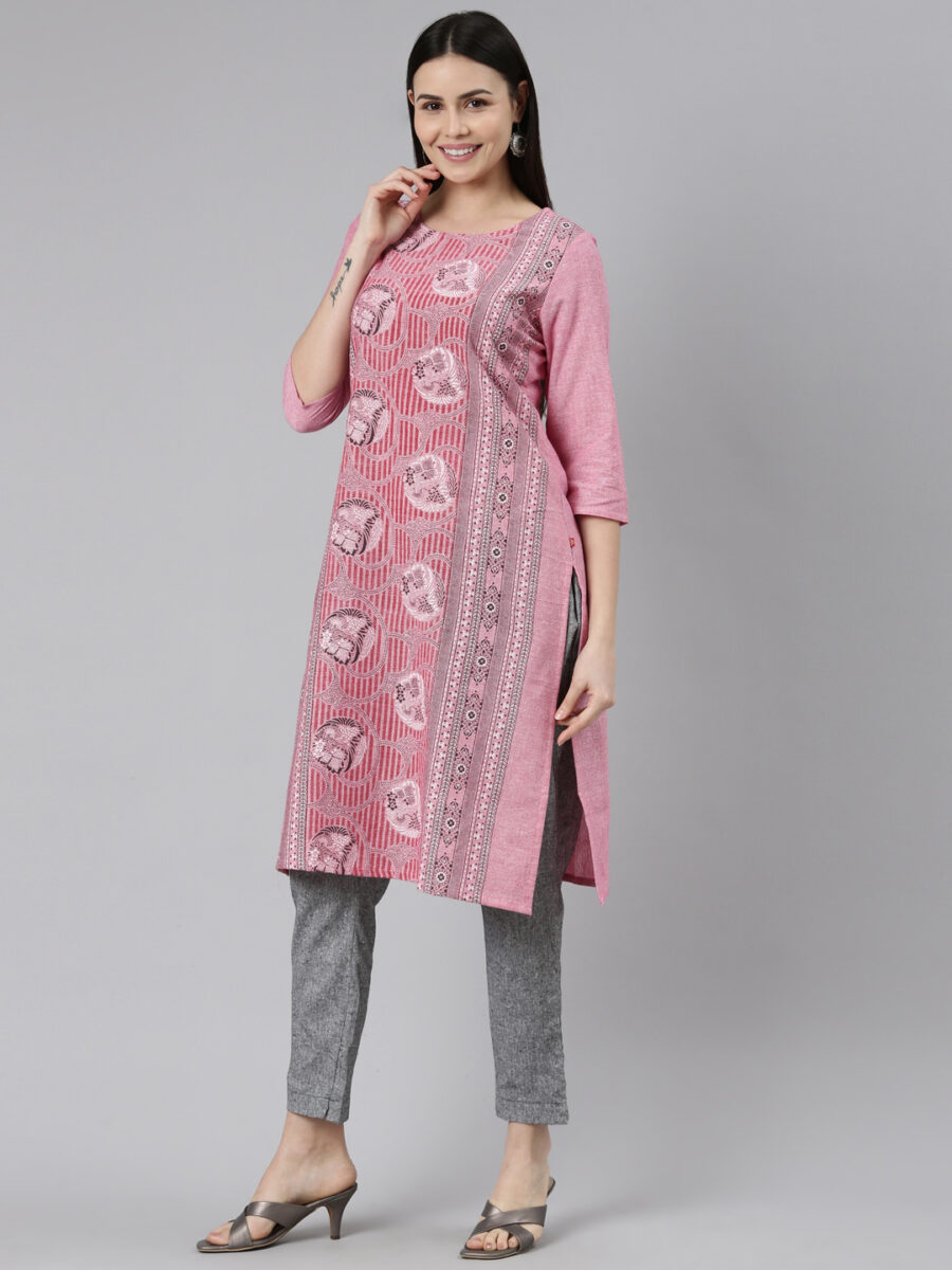 Add a touch of feminine charm to your wardrobe with the Marcia Pink Printed Cotton Straight Long Kurta. Crafted from soft, breathable cotton fabric, this kurta offers a comfortable and stylish fit. The intricate print adds a playful and elegant touch, making it perfect for both casual outings and festive occasions.