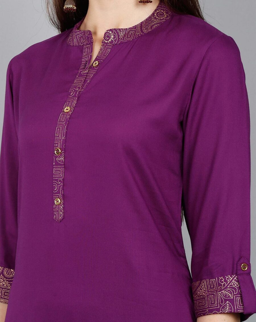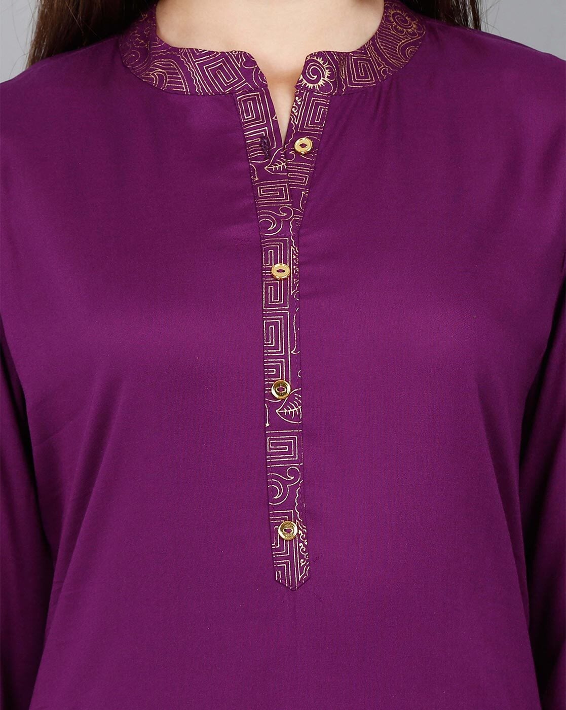 Indulge in the regal charm of the Marcia Purple Solid Rayon Kurta Set. This ensemble features a captivating solid purple kurta and coordinating bottoms, crafted from luxurious rayon for a smooth, flowing drape and unparalleled comfort.