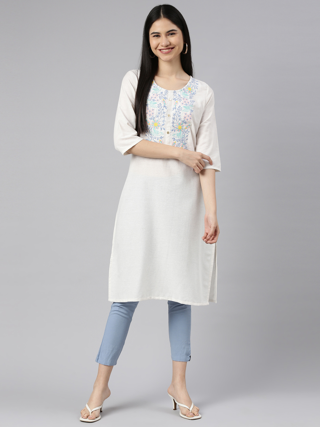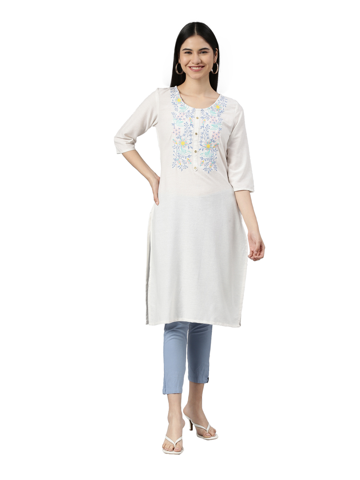 Embrace timeless elegance with the Marcia White Printed Rayon Straight Long Kurta. Crafted from soft, breathable rayon fabric, this kurta offers a comfortable and versatile fit. The intricate print adds a touch of sophistication, making it perfect for both casual and formal occasions.