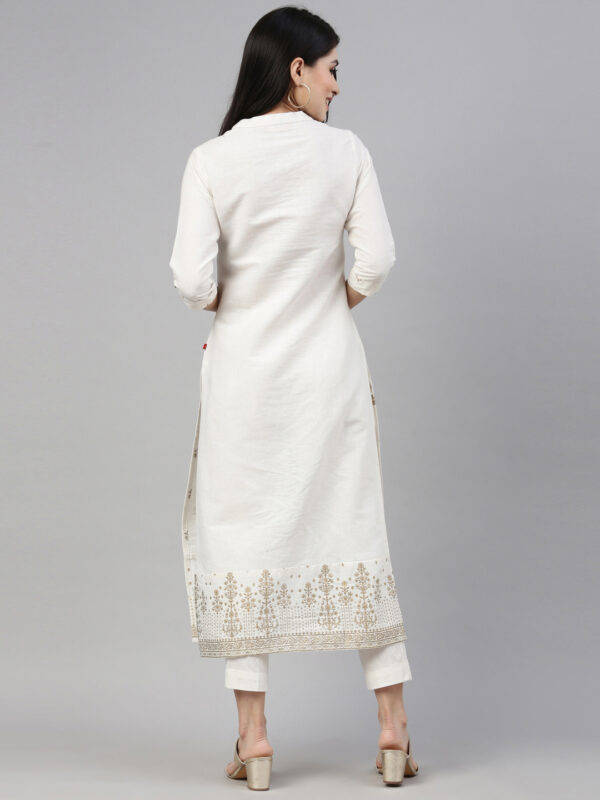 - 55 % Off Select options This product has multiple variants. The options may be chosen on the product page₹2,199.00Original price was: ₹2,199.00.₹999.00Current price is: ₹999.00.Discover a timeless ensemble. Introducing the Marcia White Printed Cotton Straight Kurta Set, a perfect combination of style and comfort. This set features a flowing white kurta adorned with intricate prints, paired with matching pants for a coordinated look.