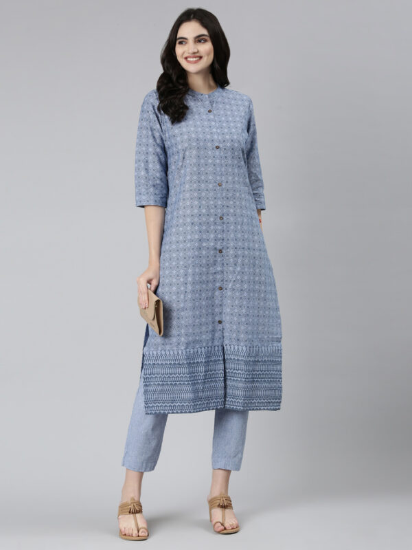 - 55 % Off Select options This product has multiple variants. The options may be chosen on the product page₹2,199.00Original price was: ₹2,199.00.₹999.00Current price is: ₹999.00.Embrace effortless elegance with this Marcia Blue Printed Cotton Straight Kurta Set. The set includes a straight-cut kurta featuring a vibrant blue print, paired with matching pants for a coordinated look. Crafted from soft, breathable cotton, this ensemble offers both comfort and style. The straight silhouette of the kurta ensures a flattering fit, while the comfortable pants provide all-day wearability.